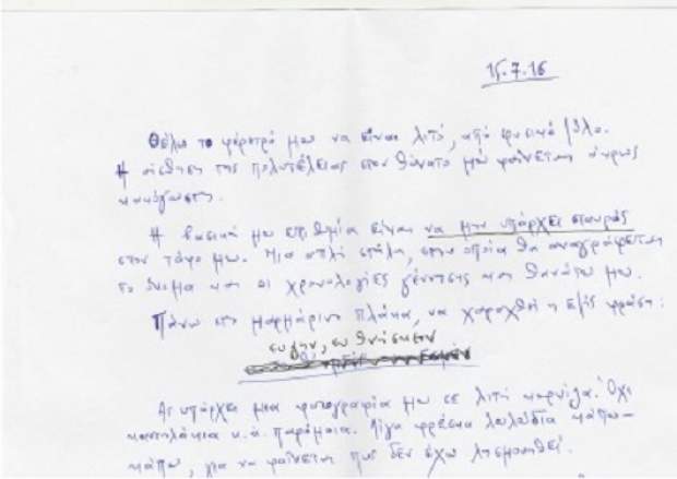 Λίγο πριν φύγει από τη ζωή συνέταξε το δικό του ιδιόχειρο σημείωμα, το τελευταίο του αντίο, βρίσκοντας το σθένος να διαβάσει ο ίδιος και να το αναρτήσει στο διαδίκτυο.