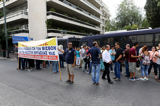 Πορεία διαμαρτυρίας από το ξενοδοχείο στη λεωφόρο Συγγρού πραγματοποιούν πρώην εργαζόμενοι του Athens Ledra με προορισμό το Μέγαρο Μαξίμου, με την ελπίδα να συναντήσουν με τον πρωθυπουργό, ώστε να αναδείξουν τα προβλήματά τους.