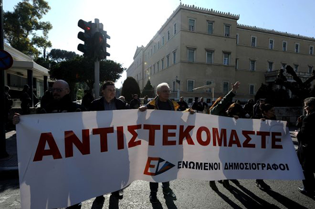 Εργαζόμενοι σε τηλεοπτικούς σταθμούς διαμαρτύρονται για το νόμο Παππά