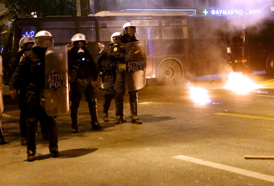 Σταδίου: Χημικά και κρότου λάμψης στους διαδηλωτές (εικόνες, video)