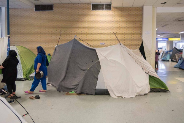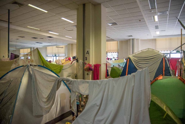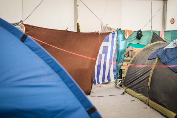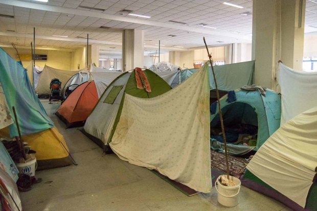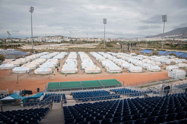 Ο χώρος του παλαιού αεροδρομίου στο Ελληνικό είναι η μόνη ανεπίσημη, μη οργανωμένη δομή σε όλη τη χώρα. Στους τρεις πρόχειρους καταυλισμούς, στις αφίξεις, στο γήπεδο του χόκεϊ και στο γήπεδο του μπέιζμπολ, τη Δευτέρα 28 Νοεμβρίου ζούσαν 2.340 άνθρωποι (Γενική Γραμματεία Ενημέρωσης, www.media.gov.gr). Το 95% είναι Αφγανοί και στη μεγάλη τους πλειοψηφία ήρθαν από την Ειδομένη. Στις αφίξεις και στο χόκεϊ οι σκηνές είναι κολλητά η μία στην άλλη. Μεγάλα σεντόνια, στερεωμένα ψηλά, προσπαθούν να δημιουργήσουν μια αίσθηση ιδιωτικότητας. Δεν έχει προβλέψει κανείς να μένουν οι οικογένειες με τις οικογένειες και οι μόνοι άντρες με τους μόνους άντρες. Έτσι, ειδικά από τις 10.30 το βράδυ που ο υπεύθυνος του καταυλισμού φεύγει και δεν υπάρχει κανένας υπεύθυνος, παρά μόνο ένα δυο περιπολικά να σταθμεύουν τριγύρω, ο καθένας κάνει όπως καταλαβαίνει. Μια οικογένεια με μικρά παιδιά μπορεί να θέλει να πέσει για ύπνο από νωρίς. Αν στη διπλανή σκηνή μένουν τρεις τέσσερις άντρες, μπορεί να έχουν όρεξη να ακούσουν μουσική και να πιουν μπίρες. Η φασαρία κρατάει 20 ώρες το 24ωρο.