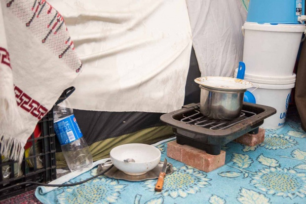 Στο χόκεϊ, μια μεγάλη κατασκευή από σκληρά πανιά που θυμίζει θερμοκήπιο, είναι το μέρος όπου οι άνθρωποι έχουν στήσει τις σκηνές τους. Η φασαρία που κάνουν αυτά τα πανιά με τον παραμικρό αέρα είναι τραγική. Ο Μοχάμεντ Αζίμ, 37 χρόνων, πριν αφήσει το Αφγανιστάν για λόγους ασφάλειας, εργαζόταν ως καλλιγράφος και δάσκαλος ζωγραφικής. Τους τελευταίους 8 μήνες ζει με τη σύζυγό του και τα τρία τους παιδιά στο Ελληνικό και μέχρι και πριν λίγο καιρό έκανε μαθήματα ζωγραφικής και καλλιγραφίας. Οι μαθητές του έφταναν τα 180 άτομα. Μας προσκάλεσε στη σκηνή του, βγάλαμε παπούτσια και καθίσαμε οκλαδόν, καθώς η Ζομπαϊντέ, η σύζυγός του, ετοίμασε για όλους μας καυτό τσάι. Η καταγωγή του Μοχάμεντ είναι από την πόλη Χεράτ. Πρώτα έφυγε για το Ιράν, όπου έζησε 8 χρόνια. Μια ζωή στην περιπέτεια. «Έμεινα εκεί χωρίς να έχω χαρτιά.