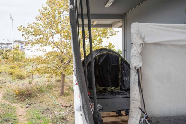 Στις αφίξεις υπάρχει ταβάνι από πάνω. Στο μπέιζμπολ είναι χύμα σκηνές 10 ατόμων στο χώμα. Αλλά τους είπαν, λέει, ότι για να μην πλημμυρίζουν κάθε φορά που βρέχει, θα βάλουν κάτω παλέτες. Κατά άλλους, οι υποδομές στο Ελληνικό δεν βελτιώνονται γιατί είναι ένας άτυπος καταυλισμός, ο οποίος κάποια στιγμή θα εκκενωθεί. Αλλά οι άνθρωποι που ζουν εδώ δεν έχουν καμία ενημέρωση. Για το πότε θα εκκενωθεί και για το πού θα μεταφερθούν. Οι επιλογές τους είναι δύο: ή να ζητήσουν άσυλο ή να γυρίσουν πίσω. Και μια τρίτη. Να αναζητήσουν έναν παράνομο τρόπο διαφυγής.