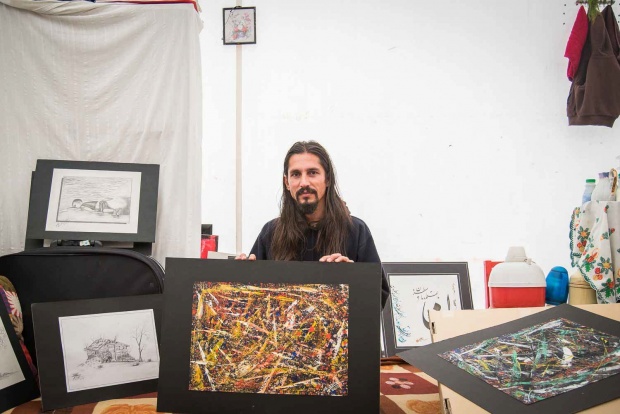 «Έκανα μαθήματα σε 180 άτομα, 50 από αυτούς παιδιά. Είχα, επίσης, δημιουργήσει 5 ομάδες ποδοσφαίρου, οι 2 από αυτές για γυναίκες, αν και οι υπεύθυνοι δεν μας βοήθησαν να τις προχωρήσουμε. Οργάνωνα πολλές δράσεις και δεν με κούραζε καθόλου αυτό. Όμως, από την ημέρα που έβρεξε, το νερό μπήκε στις σκηνές μας, καταστρέφοντας χαρτιά και υλικά. Εδώ και ένα μήνα δεν έχω πια δυνατότητα και όρεξη για ζωγραφική. Τώρα πλέον ζωγραφίζω με το μυαλό μου και κάνω έτσι νοητά εξάσκηση».