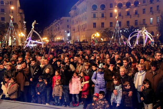Πλήθος κόσμου συγκεντρώθηκε στην πλατεία Αριστοτέλους για να θαυμάσει το χριστουγεννιάτικο διάκοσμο, ενώ από σήμερα ξεκινούν σε ολόκληρη την πόλη και οι συνολικά 180 καλλιτεχνικές εκδηλώσεις που στόχο έχουν να τονωθεί και η αγοραστική κίνηση. Λίγο νωρίτερα φωταγωγήθηκε το δέντρο στο χριστουγεννιάτικο χωριό που λειτουργεί φέτος για πρώτη χρονιά στην πλατεία Μικρασιατικού και Θρακικού Ελληνισμού στην περιοχή της Τούμπας, από τον δήμαρχο Γ. Μπουτάρη.