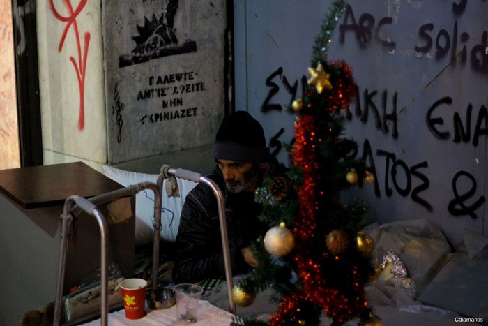 Ο Χρήστος μένει σε ένα στρώμα στη Σταδίου. Έχει ένα ντουλάπι δίπλα για να βάζει τα τρόφιμα, τα τσιγάρα και τα χάπια του. Έχει κι ένα στολισμένο Χριστουγεννιάτικο δέντρο. Ο Χρήστος ζει τα Χριστούγεννα, όπως όλοι μας. Ο Χρήστος ζει τα Χριστούγεννα, περισσότερο από τον καθένα μας. Μιας και έχει πιάσει για τα καλά το νόημα, μιας και τα ζει όλο το χρόνο.
