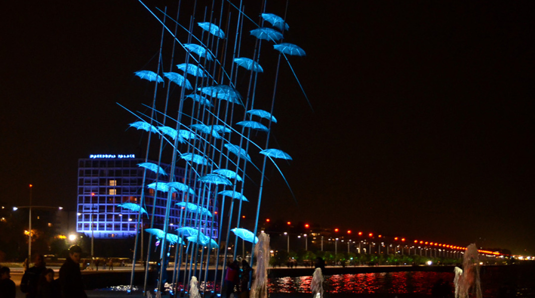 Στις “Ομπρέλες” του Γ. Ζογγολόπουλου, στο πλακόστρωτο της Νέας Παραλίας Θεσσαλονίκης, σκαρφάλωσε άνδρας, άγνωστων μέχρι στιγμής στοιχείων και αρχικά δεν ήθελε να κατέβει, παρά τις εκκλήσεις αστυνομικών και περαστικών.