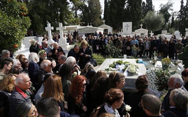 Επικήδειους λόγους εκφώνησαν ο ακαδημαϊκός Άγγελος Δεληβορριάς, ο καθηγητής Κωνσταντίνος Τσουκαλάς, ο πρώην υπουργός Νίκος Σηφουνάκης και ο πρόεδρος της Εταιρείας Ελλήνων Σκηνοθετών Χάρης Παπαδόπουλος. Μεταξύ άλλων, στο Α' Νεκροταφείο παραβρέθηκαν ο πρωθυπουργός Αλέξης Τσίπρας, ο Φώτης Κουβέλης, ο πρώην πρόεδρος της Βουλής Δημήτρης Σιούφας, ο Γιώργος Βαρδινογιάννης, ο υφυπουργός Παιδείας Κώστας Ζουράρις, ο Νίκος Φίλης, ο Μανώλης Γλέζος, ο Σταύρος Θεοδωράκης, η Ζωή Κωνσταντοπούλου, ο Κώστας Λαλιώτης, ο Μίμης Ανδρουλάκης κ.ά.