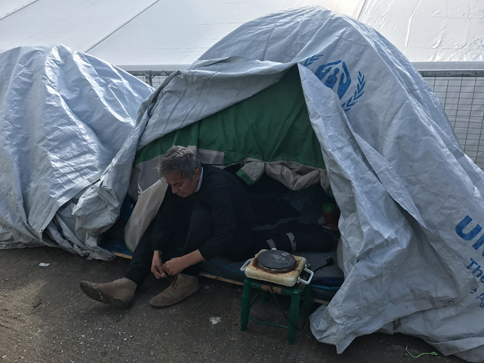Τώρα μένω σε μια σκηνή για ένα άτομο. Μέσα έχω τα ρούχα μου, ένα γκαζάκι για να ζεσταίνομαι και να ζεσταίνω το ψωμί μου, κι ένα παιχνίδι που μου θυμίζει τα παιδιά μου. Έχω επίσης όλα μου τα όνειρα και τις αναμνήσεις μαζί μου, στο μυαλό μου.