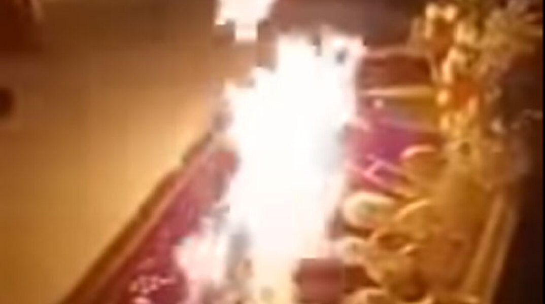Ο ιερέας βάζει φωτιά στην Αγία Τράπεζα, η οποία είναι ο τάφος του Χριστού. «Ο σκοπός είναι αφού η Αγία Τράπεζα είναι ο Τάφος του Χριστού μας, να ανάψουμε από αυτήν που είναι ότι πιο Άγιο έχουμε μέσα στο ναό μας, μιας και πάνω σε Αυτήν γίνεται ο καθαγιασμός των θείων δώρων», αναφέρουν οι ιερωμένοι, οι οποίοι κάνουν αυτή την πράξη από το 2014. Φέτος ανάρτησαν σχετικό βίντεο στο facebook.