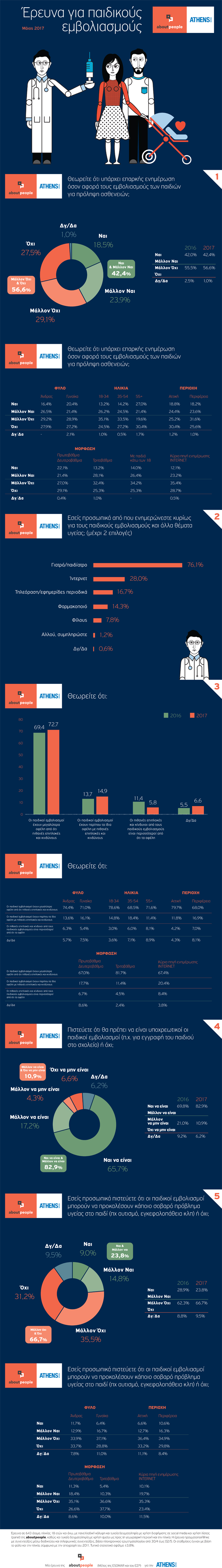 Ο Πέτρος Ιωαννίδης, αναλυτής της aboutpeople, περιγράφει στην Athens Voice: “Φαίνεται σε όλες τις ερωτήσεις, ότι η δυναμική του «αντιεμβολιαστικού κινήματος» περιορίζεται αρκετά σε σχέση με την αντίστοιχη έρευνα του 2016. Αυτό πιθανώς να οφείλεται στην καλύτερη ενημέρωση που υπήρξε σχετικά με το ζήτημα, στις κακές ειδήσεις που ήρθαν από το εξωτερικό σχετικά με την έξαρση παιδικών ασθενειών (π.χ. ιλαράς) που είχαν εξαλειφθεί, αλλά και στη μεγάλη συζήτηση περί εμβολιασμού ή όχι των προσφυγόπουλων που υποδέχεται η Ελλάδα. Βεβαίως, δεν θα πρέπει να παραβλέψουμε ότι περίπου 1 στους 4 παραμένει επιφυλακτικός απέναντι στα εμβόλια. Τα μεγαλύτερα ποσοστά "επιφυλακτικότητας" τα συναντούμε σε εκείνους που έχουν το ίντερνετ ως κύρια πηγή ενημέρωσης, στους απόφοιτους πρωτοβάθμιας και δευτεροβάθμιας εκπαίδευσης, στους κατοίκους της περιφέρειας, στις γυναίκες και στις ηλικίες 35-54 ετών.”