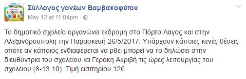 Πρόκειται για ένα από τα δύο λεωφορεία που μετέφερε 13 μαθητές, 18 γονείς και 4 εκπαιδευτικούς από το Δημοτικό Σχολείο Βαμβακοφύτου με προορισμό πιθανότατα την Αλεξανδρούπολη για εκδρομή.