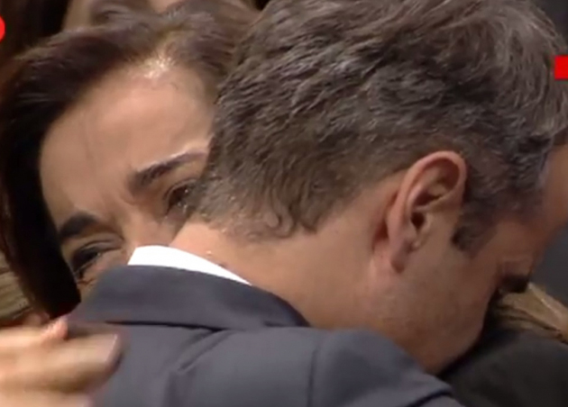 Αμέσως μετά ο πρόεδρος της ΝΔ έπεσε στην αγκαλιά του της Ντόρας και τα δύο αδέλφια έμειναν αγκαλιασμένοι με δάκρυα στα μάτια.
