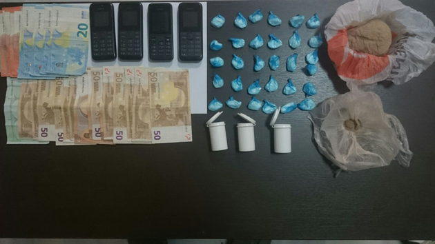 Ακολούθησε έρευνα στο σπίτι του και στο χώρο εργασίας του, όπου βρέθηκαν και κατασχέθηκαν: 146 γραμμάρια ηρωίνης, το χρηματικό ποσό των 750 ευρώ, ως προερχόμενο από διακίνηση ναρκωτικών ουσιών και δύο κινητά τηλέφωνα.