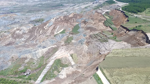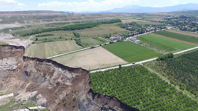 Στην «εξαφάνιση» ενός ολόκληρου χωριού οδηγεί η κατολίσθηση εκατομμυρίων κυβικών μέτρων χώματος στο Αμύνταιο το πρωί του Σαββάτου.