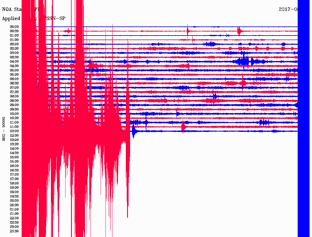 Δείτε πώς καταγράφηκε ο σεισμός από τον σεισμογράφο που είναι εγκατεστημένος στην Αγία Παρασκευή Λέσβου: