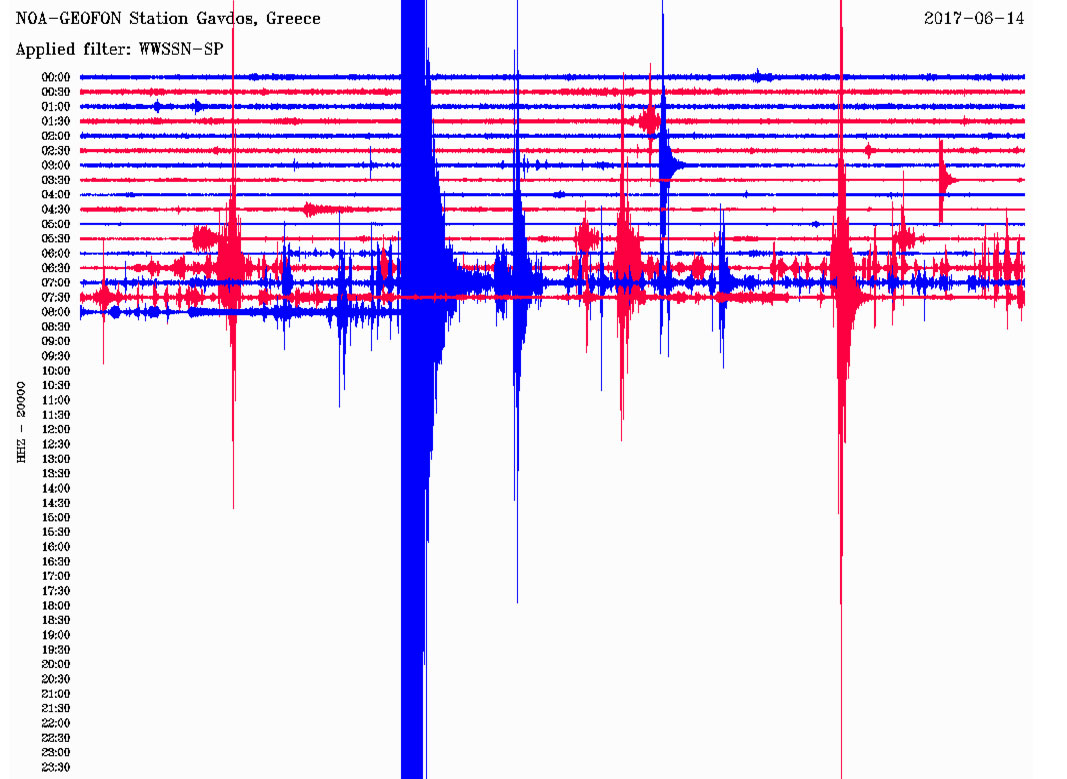 Δείτε πώς κατέγραψε τη δόνηση ο σεισμογράφος που είναι τοποθετημένος στη Γαύδο: