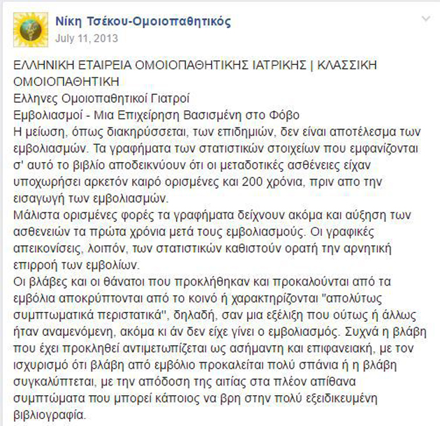 Τα Ellinika Hoaxes ανέτρεξαν σε δημοσιεύσεις της φερόμενης «γιατρού», από τις οποίες μεταξύ άλλων, προκύπτει πως η ίδια είναι φανατική αντιεμβολίστρια, ενώ ως ενδεδειγμένο τρόπο αντιμετώπισης του καρκίνου προτείνει την... αποτοξίνωση και ηρεμία.