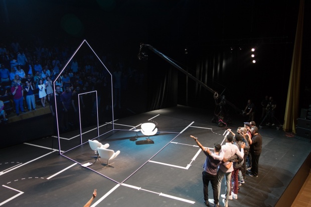 Τα αδέρφια εισήλθαν στην Κεντρική Σκηνή υπό τους ήχους του «Crazy in Love» της Beyonce και κάθισαν μπροστά από το εντυπωσιακό σκηνικό που είχε επιμεληθεί η σκηνογράφος και αρχιτέκτονας Εύα Μανιδάκη.