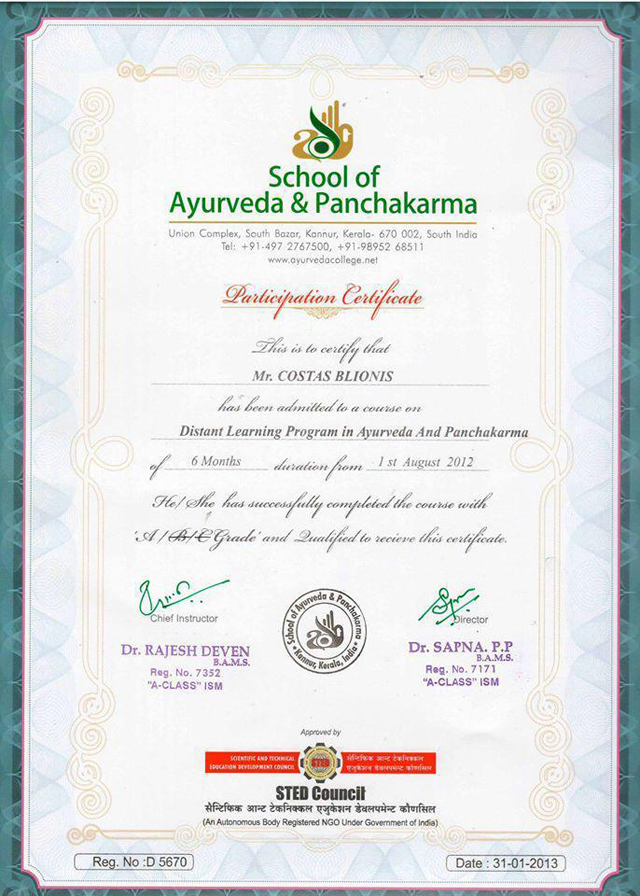 Ο Κώστας Μπλιώνης από τη Θάσο, είναι ένας ακόμη αυτοαποκαλούμενος «θεραπευτής», με εξειδίκευση στην ψευδοεπιστήμη της Αγιουρβεδα. Για να είμαστε δίκαιοι, βρήκαμε και τα διαπιστευτήριά του που δεν είναι τίποτα άλλο από ένα πτυχίο αγιουρβεδικής «ιατρικής», που αποκτήθηκε εξ αποστάσεως σε 6 μήνες από «πανεπιστήμιο» της Ινδίας. (Εξυπακούεται πως η αξία του τίτλου δε ξεπερνά την αξία του χαρτιού πάνω στο οποίο έχει τυπωθεί).