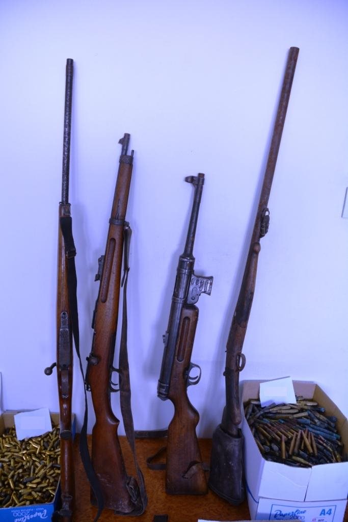 Ειδικότερα, σε οργανωμένη αστυνομική επιχείρηση με τη συνδρομή αστυνομικού σκύλου, διαπιστώθηκε ότι ο 48χρονος παγοπώλης έκρυβε στο σπίτι του ένα οπλοπολυβόλο με δύο γεμιστήρες, δύο πολεμικά τυφέκια, τρία πιστόλια με τις γεμιστήρες τους, μία κυνηγετική καραμπίνα, 2.554 φυσίγγια διαφόρων διαμετρημάτων, 122 γεμιστήρες πολεμικών τυφεκίων, 4 χειροβομβίδες αμυντικού τύπου, 9 μολύβδινα σφαιρίδια, βραδύκαυστο φιτίλι μήκους 37 εκατοστών, 14 κάλυκες και 6 φωτοβολίδες.