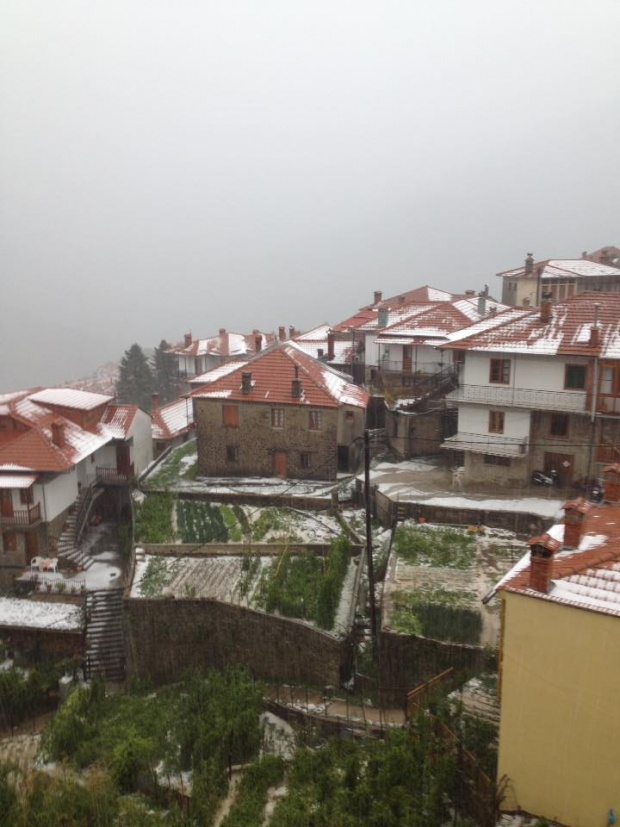 Χαρακτηριστικό του μεγέθους της χαλαζόπτωσης είναι πως άσπρισαν οι στέγες και οι κήποι των σπιτιών.
