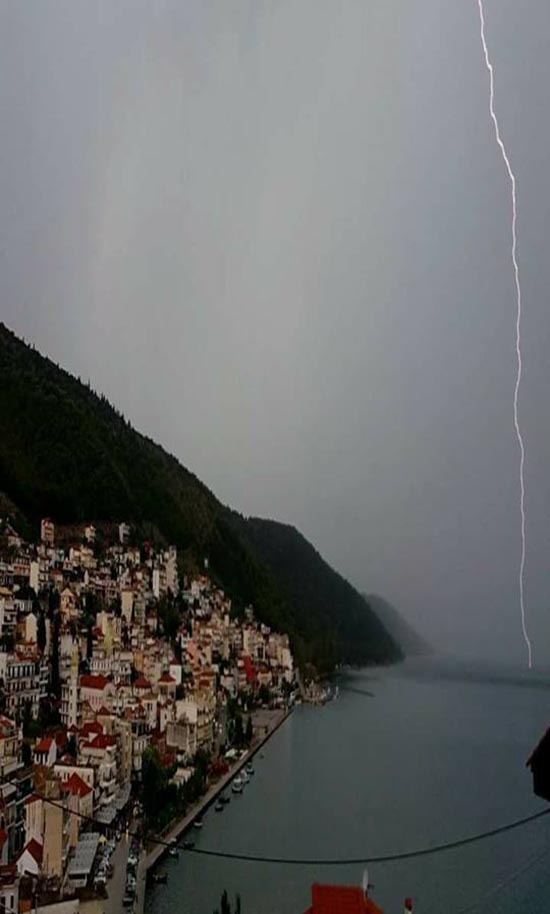 Χαρακτηριστικό της κακοκαιρίας είναι οι χαλαζοπτώσεις, αλλά και οι κεραυνοί που συνεχίζουν να πέφτουν μέχρι και αυτή τη στιγμή, όπως μπορεί να φανεί και στην παραπάνω φωτογραφία από το facebook του Νίκου Μιμηγιάννη με τον κεραυνό που πέφτει στην θάλασσα στην Αμφιλοχία: