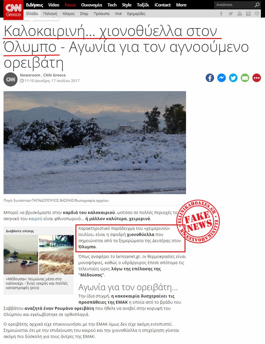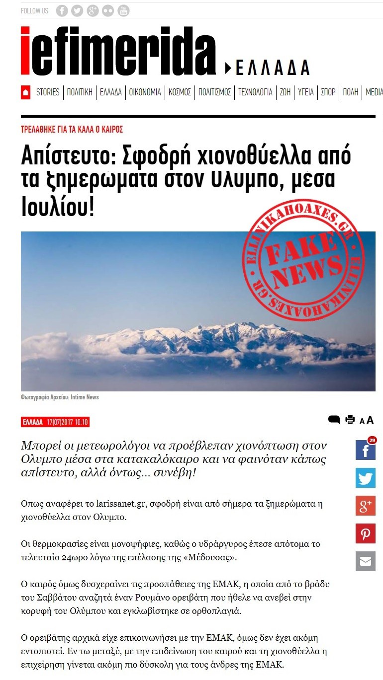 Από το πρωί το Ελληνικό διαδίκτυο βλέπουμε δημοσιεύματα που αναφέρουν «χιόνια» και «χιονοθύελλα στον Όλυμπο». Είναι αλήθεια;