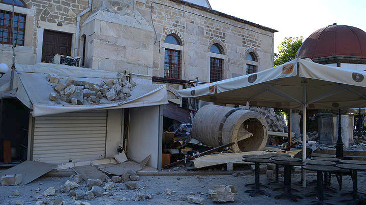 catastrophe in the picturesque main square of #Kos town #earthquake pic.twitter.com/5lbyaX2HzT