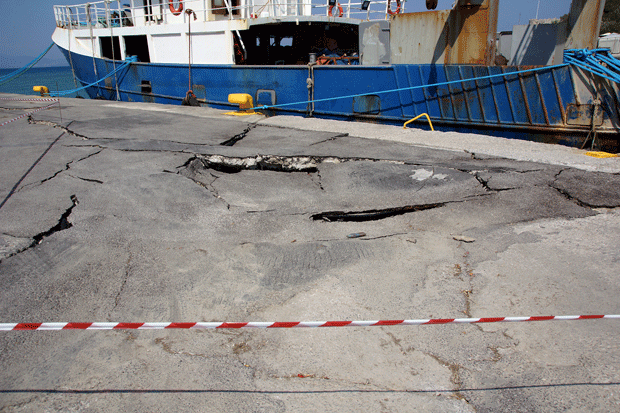 «Ανενεργό» λόγω των μεγάλων ρωγμών είναι το λιμάνι του νησιού. Κανονικά λειτουργεί το αεροδρόμιο.
