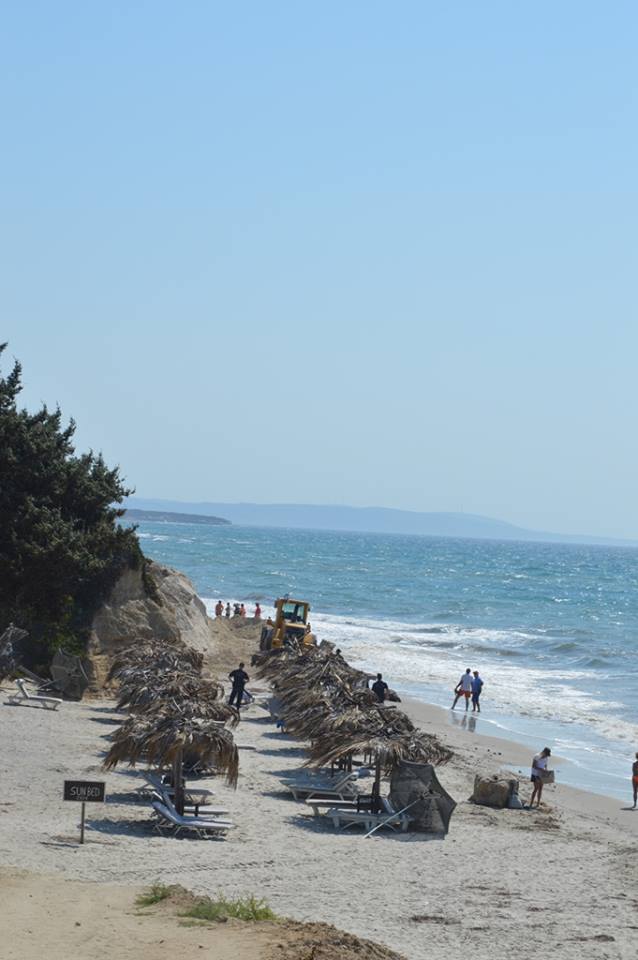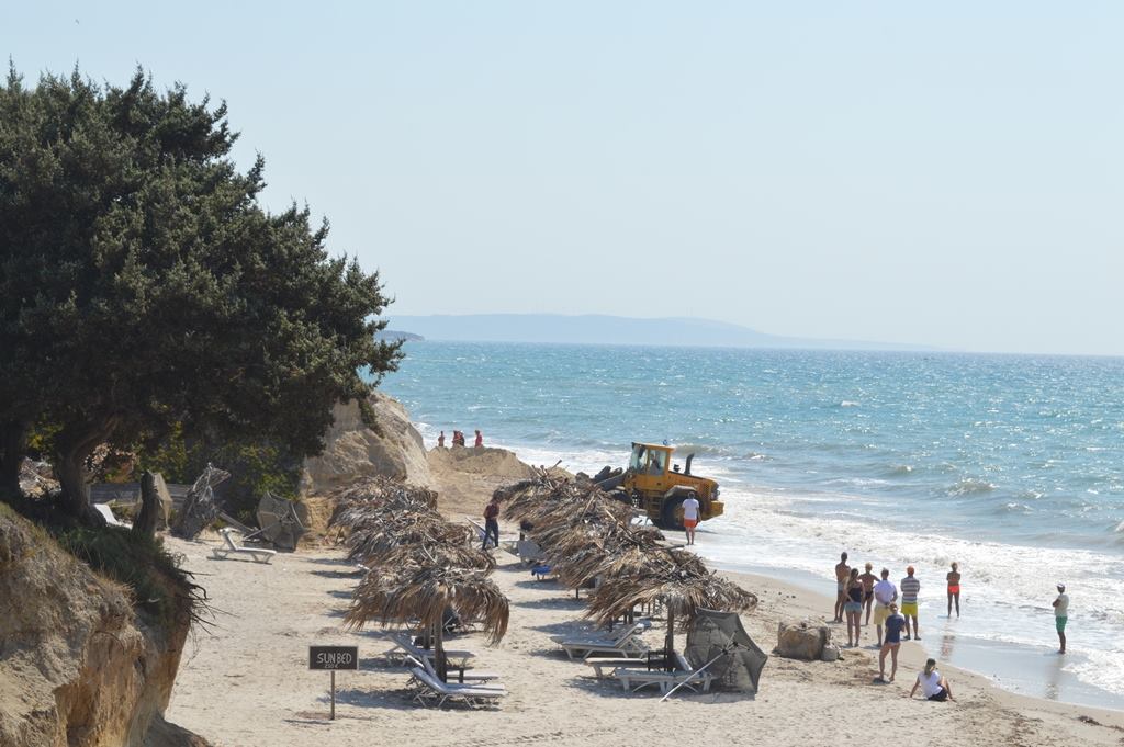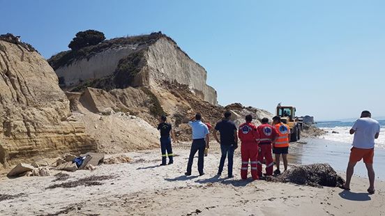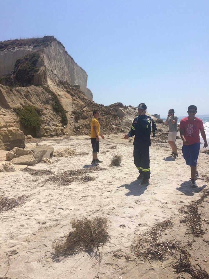 Εν τω μεταξύ, στις 14.05 το μεσημέρι του Σαββάτου μεγάλος όγκος αμμόλοφου αποκολλήθηκε και έπεσε προς την παραλία Μαστιχαρίου, όπου λουόμενοι έκαναν το μπάνιο τους.