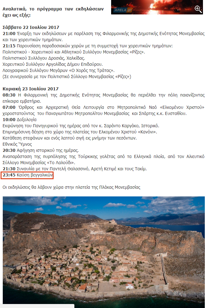 Υπενθυμίζεται ότι ένα από τα έθιμα των ημερών στη συγκεκριμένη πόλη είναι και η αναπαράσταση της πυρπόλησης τουρκικού πλοίου.