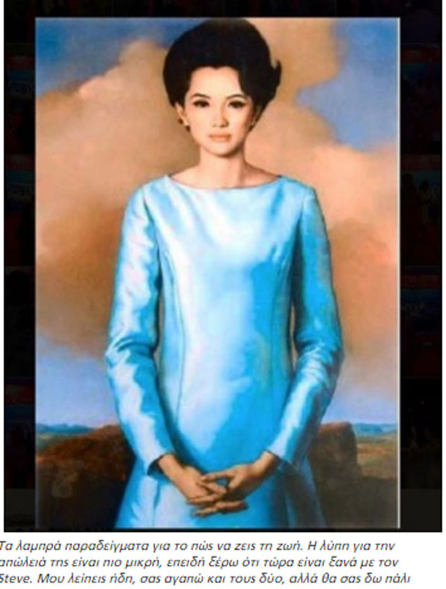 «Με μεγάλη στενοχώρια θέλω να πω ένα αντίο στη θεία μου, Presy Lopez Psinakis, της οποίας η ευγένεια, η αρχοντιά, η γενναιοδωρία, οι τρόποι και η ασύγκριτη κλάση της, μου έδειξαν σε όλη μου τη ζωή πώς να είμαι ένας πραγματικός πολίτης του κόσμου. Μαζί με τον Steve ήταν οι οδηγοί μου σε αυτόν τον κόσμο».