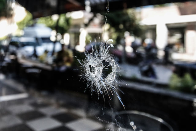 Κάποιο από τα άτομα αυτά, φέρεται να πυροβόλησε προς το κατάστημα δύο με τρεις φορές, με αποτέλεσμα μια από τις σφαίρες να χτυπήσει την 29χρονη που καθόταν στην καφετέρια, ενώ άλλη μία διαπέρασε τη βιτρίνα του κομμωτηρίου, προκαλώντας ζημιές.
