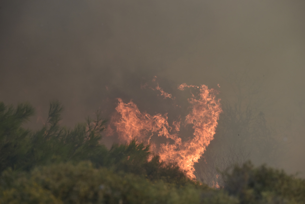Στον Βαρνάβα έχουν καεί κατοικίες. Ιδιαίτερο βάρος στην επιχείρηση κατάσβεσης έχει δοθεί πλέον στο να μην περάσει η πυρκαγιά τον δρόμο και βγει στην παραλία.