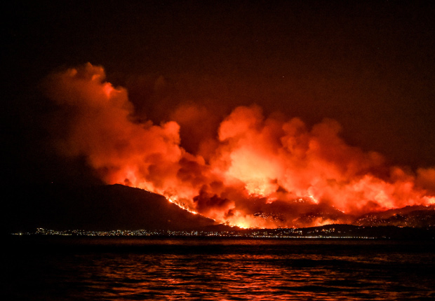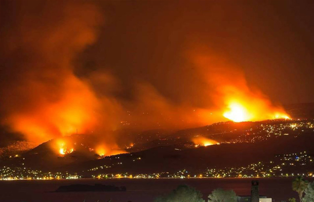 Το μέγεθος της καταστροφής στον Κάλαμο Αττικής, όπως φαινόταν κατά τη διάρκεια της νύχτας από τα απέναντι παράλια της Εύβοιας. Οι φωτογραφίες δημοσιεύτηκαν στο Twitter.