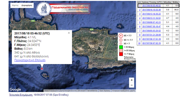 Σεισμός 4,1R νοτιοδυτικά της Κρήτης (εικόνα)