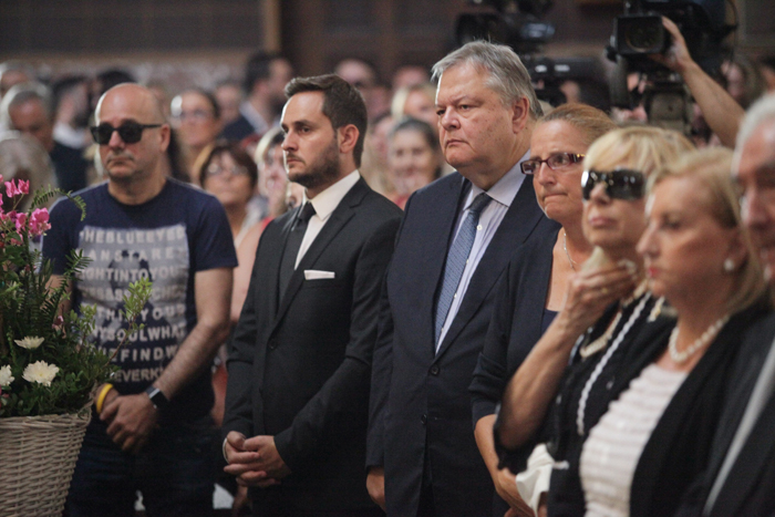 Στην κηδεία που έγινε στον ιερό ναό του Αγίου Διονυσίου Αρεοπαγίτου στο Κολωνάκι, βρέθηκαν μεταξύ άλλων, οι Προκόπης Παυλόπουλος, Ευάγγελος Βενιζέλος, Αλέκος Φλαμπουράρης, Θοδωρής Ρουσόπουλος, Φάνη Πάλλη Πετραλιά, Σήφης Βαλυράκης με τη σύζυγό του, Παναγιώτης Κουρουμπλής, Κάτια Δανδουλάκη, Πέγκυ Ζήνα, Ελίζα Βόζενμπεργκ, Κατερίνα Ζαρίφη, Μανούσος Μανουσάκης, Νικολέτα Καρρά, Βάνα Μπάρμπα, Μάνος Πίντζης, Φώτης Μεταξόπουλος, Βέρα Κρούσκα, Απόστολος Γκλέτσος, Αντώνης Λουδάρος, Μιμή Ντενίση, Νόνικα Γαληνέα, Γιάννης Βούρος, Λόλα Νταιφά, Σταμάτης Φασουλής, Έλενα Ακρίτα, Γιώργος Κυρίτσης, Μάκης Τσέλιος, Νεφέλη Ορφανού, Τάκης Χρυσικάκος, Σάσα Σταμάτη, Γιάννης Βογιατζής, Ζωζώ Σαπουντζάκη, τέως βασιλιάς Κωνσταντίνος με τον γιο του Νικόλα, Ηλίας Ψινάκης, Τρύφων Σαμαράς, Κώστας Βουτσάς, Μάρθα Καραγιάννη.