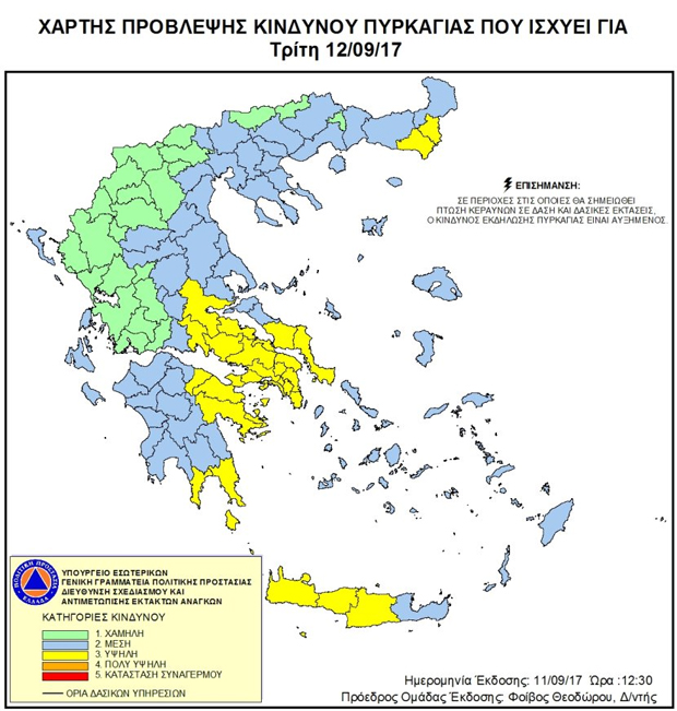 Ειδικότερα, σύμφωνα με τον χάρτη πρόβλεψης της Γενικής Γραμματείας Πολιτικής Προστασίας, πρόβλημα υπάρχει στους Νομούς Αττικής, Βοιωτίας, Εύβοιας, Φθιώτιδας, Φωκίδας, Κορινθίας, Αργολίδας, Μεσσηνίας, Λακωνίας, Κομοτηνής, Έβρου, Χανιών, Ρεθύμνου, Ηρακλείου και τα Κύθηρα (δείκτης 3).