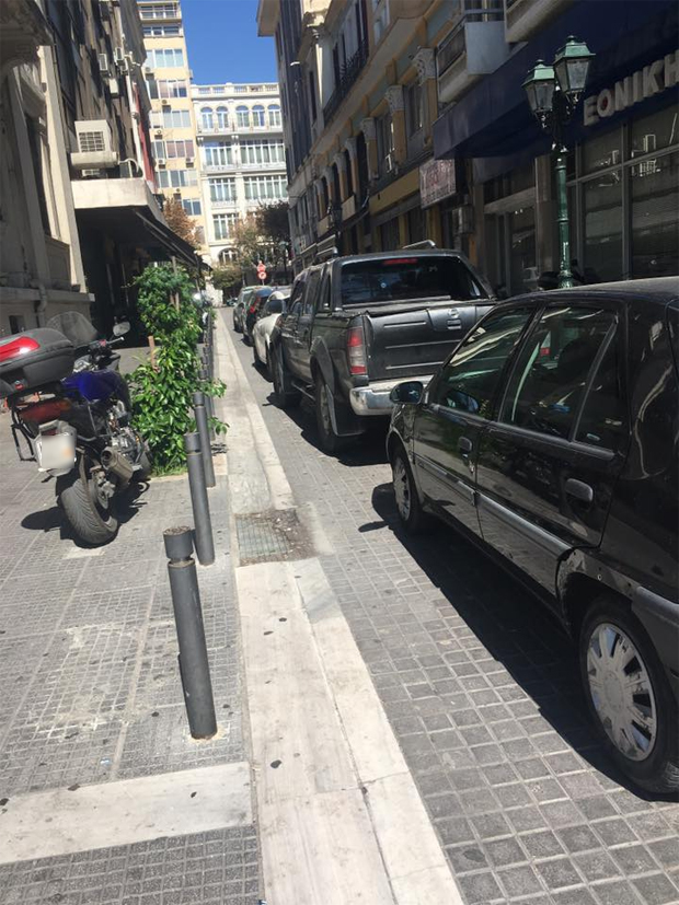 Ο πεζόδρομος είχε καταληφθεί από αυτοκίνητα.