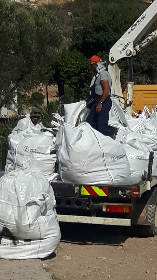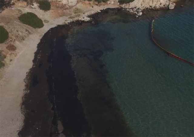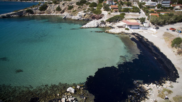 Mεσημέρι στα Σελήνια της Σαλαμίνας με το θερμόμετρο στους 38 βαθμούς και βάλε. Δύο συνεργεία απορρύπανσης, αποτελούμενα από τριάντα άτομα περίπου το καθένα, δουλεύουν ασταμάτητα προκειμένου να καθαρίσουν τις παραλίες, όπου παρατηρείται η μεγαλύτερη ρύπανση.