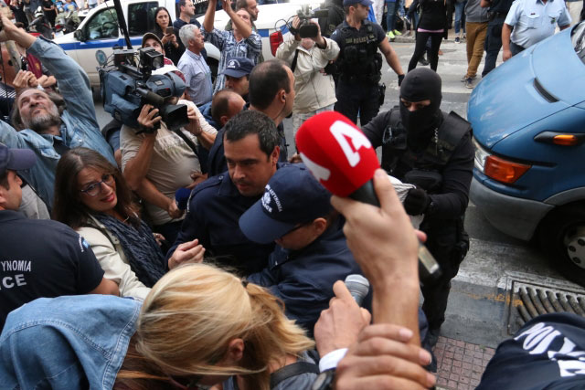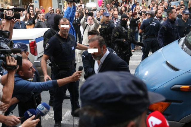 Οι τρεις από τους συλληφθέντες δεν θέλησαν να κρύψουν τα πρόσωπά τους, ενώ ο ένας έβαλε το χέρι του μπροστά, ώστε να αποφύγει τη δημοσιότητα.
