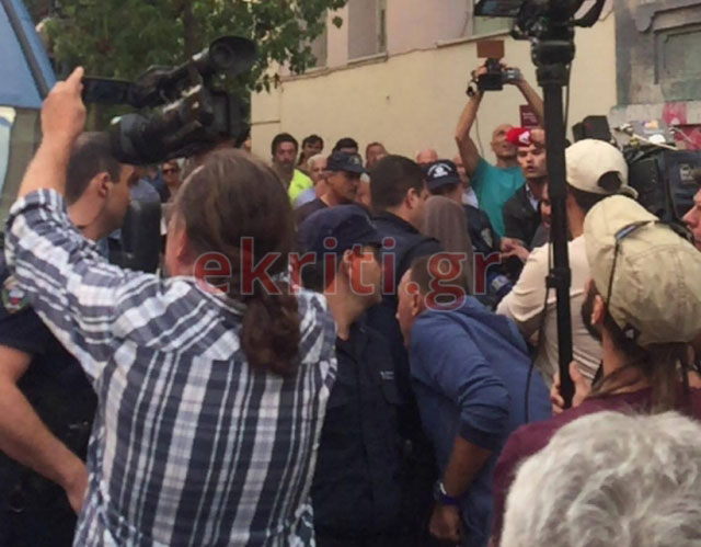 Στα δικαστήρια του Ηρακλείου, πέρα από αστυνομικούς, δημοσιογράφους και φωτογράφους, έχει συγκεντρωθεί και πλήθος κόσμου, φωνάζοντας «ντροπή σας», «ντροπή σας αλήτες».