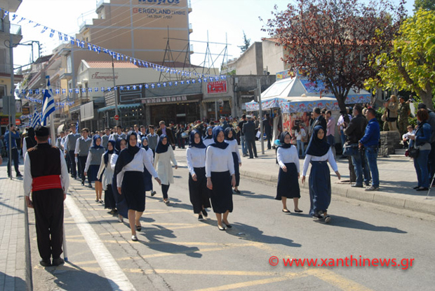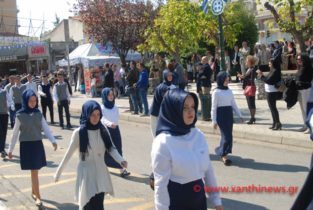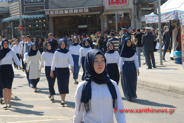 Σύμφωνα με δημοσίευμα στο xanthinews.gr, οι μαθήτριες ενός ολόκληρου μειονοτικού σχολείου (πιθανότατα το Ιεροσπουδαστήριο) παρέλασε, φορώντας μαντίλα.