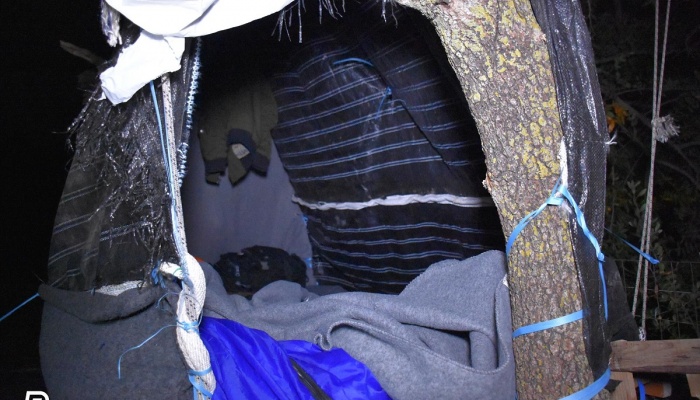 Μην έχοντας άλλη λύση, πολλοί από αυτούς χρησιμοποίησαν τις κουβέρτες που τους δόθηκαν και με τη χρήση καλαμιών έστησαν όπως- όπως πρόχειρες σκηνές είτε πάνω στο χώμα και στη λάσπη, είτε ακόμα και πάνω στα δέντρα!