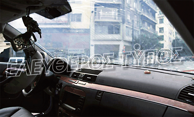 Τα τζάμια έχουν «θολώσει» από την ανάφλεξη της πυρίτιδας, οι πλαϊνοί αερόσακοι έχουν ανοίξει από το ωστικό κύμα. Πιτσιλιές από αίμα έχουν βάψει τα καθίσματα στο πίσω μέρος του αυτοκινήτου.