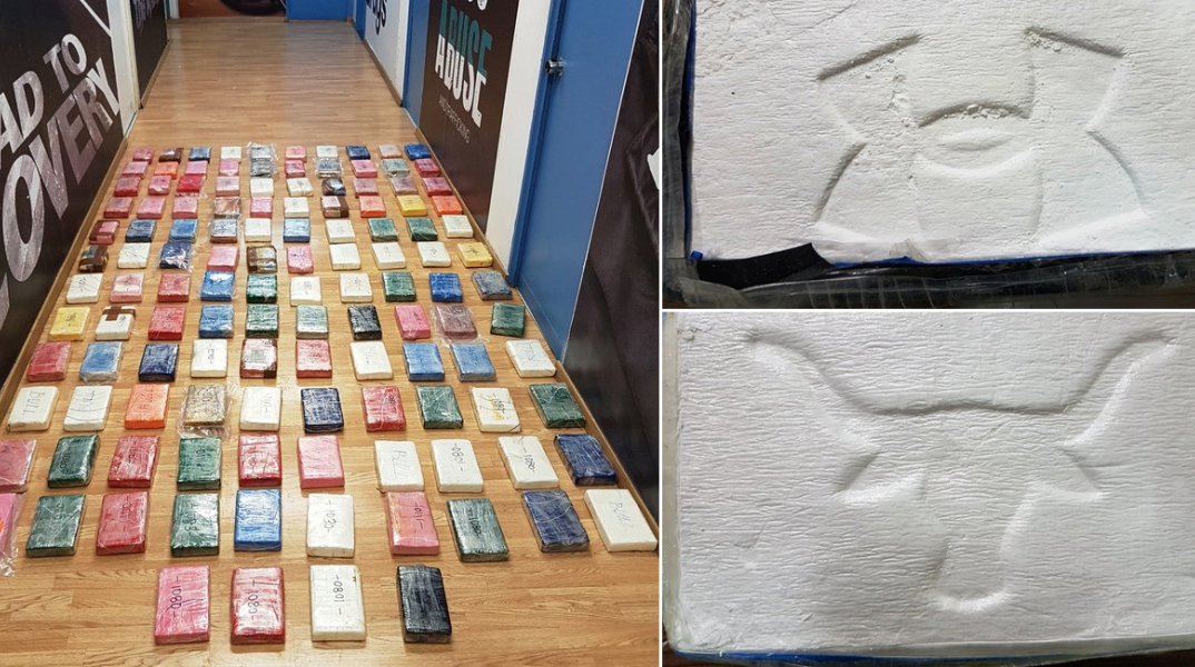 Τα ναρκωτικά βρέθηκαν σε 124 συσκευασίας, οι οποίες έφεραν διάφορα λογότυπα ποιοτήτων κοκαΐνης, υποδηλωτικών της προελεύσεως εγκληματικών οργανώσεων της Λατινικής Αμερικής.