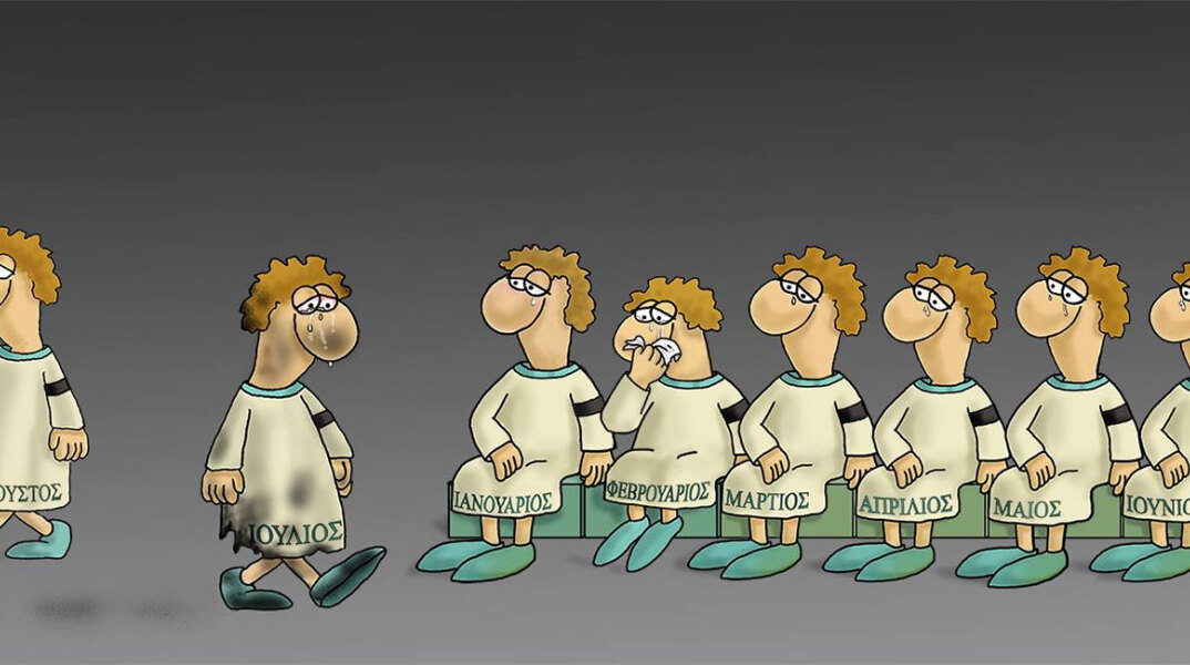 Στο ένα ο Ιούλιος είναι μόνος, κλαίει και ζητά συγγνώμη, αφού έτσι κι αλλιώς δεν το έκανε κανείς άλλος και στο άλλο, δίνει καμένος τη θέση του στον Αύγουστο με όλους τους μήνες να φορούν μαύρα περιβραχιόνια και να κλαίνε.