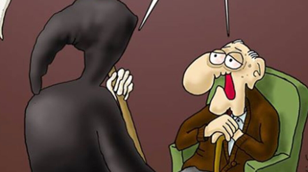 Ο Χάρος, με το δρεπάνι ανά χείρας, επιστρέφει, και μετά το «έχω τη λύση για το συνταξιοδοτικό» στον υπουργό Εργασίας, έρχεται ο διάλογος με τον συνταξιούχο που φοβάται να πεθάνει.