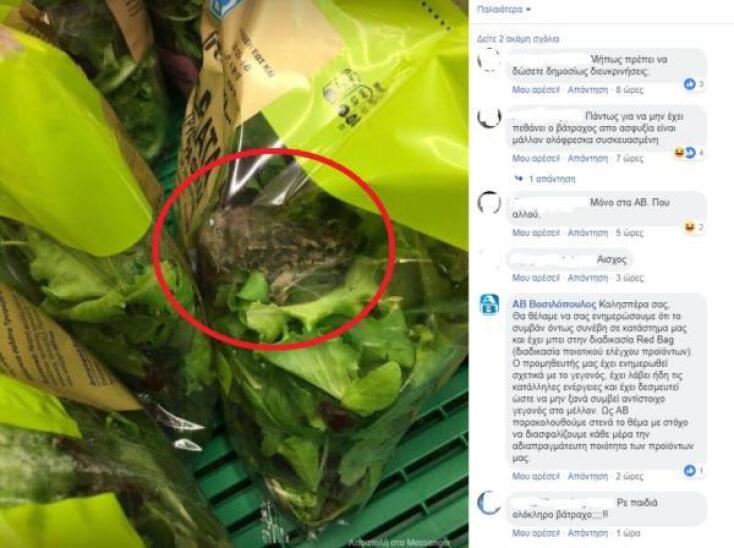 Για τη φωτογραφία που έγινε viral στα social media με ένα βατράχι να έχει εγκλωβιστεί μέσα σε συσκευασμένη σαλάτα πλυμένη και κομμένη έτοιμη προς χρήση από τους καταναλωτές, απάντησε μέσω ανάρτησης στo Facebook η ΑΒ Βασιλόπουλος.